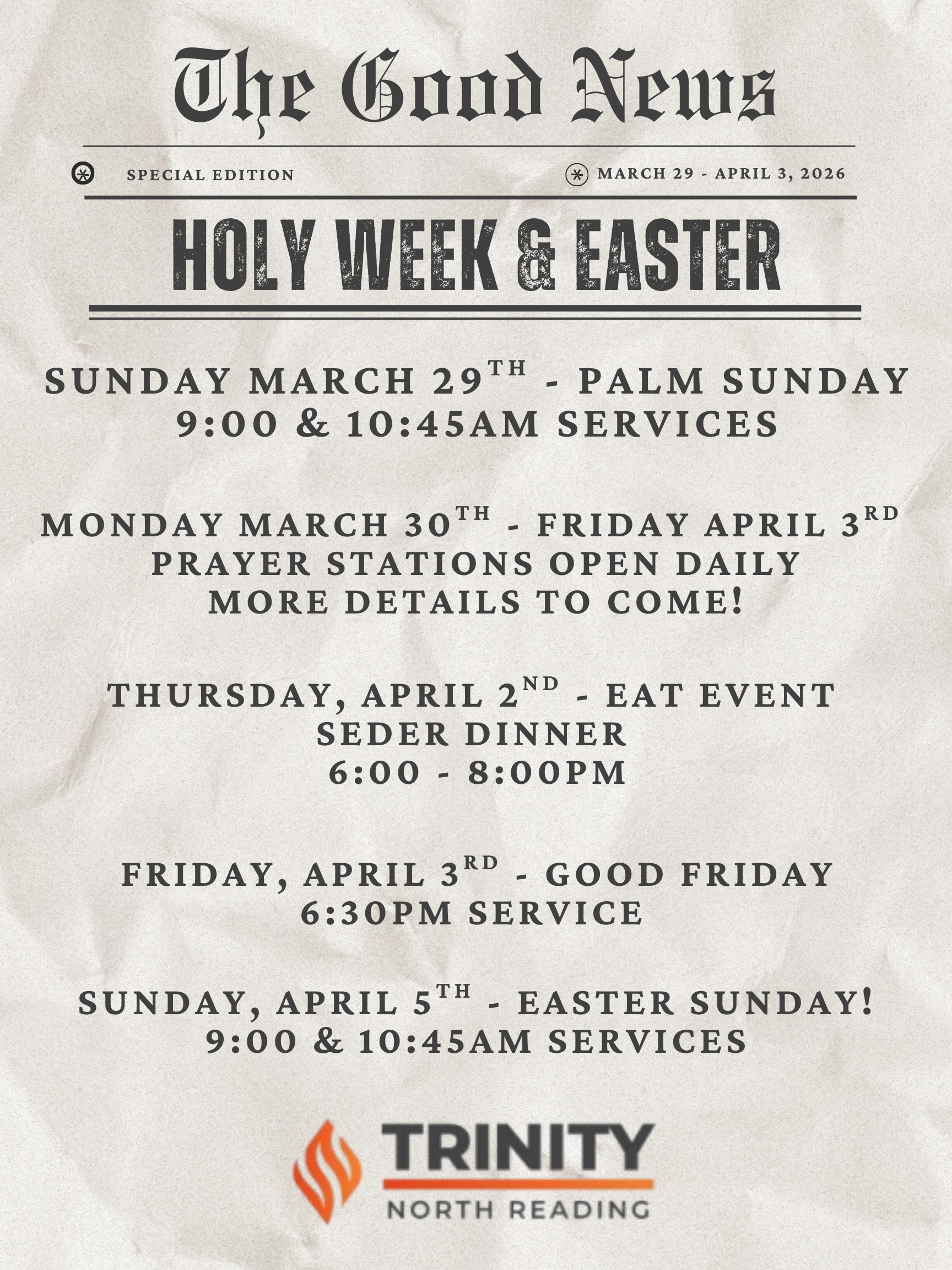 Join us for Sunday Morning Services at 9:00 AM and 10:45 AM
